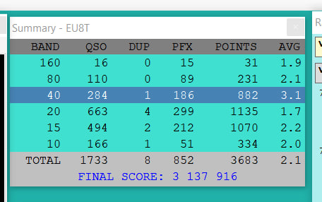 40м — прием был лучший что я слышал за последние годы. Что Карибы, что Китай собирались с первой попытки, когда я пришел, станции США уже шли довольно громко, хотя по осени они проходили лишь под самое утро. Вот что называется разная тактика для разных тестов. Нужно было меньше сидеть на европейской 80ке и бодрее переползать на 40. В итоге сидел до рассвета и позднее. На грейлайне надеялся увидеть США на 8оМ, но мы с ними видимо разминулись. У коллег прием был…
