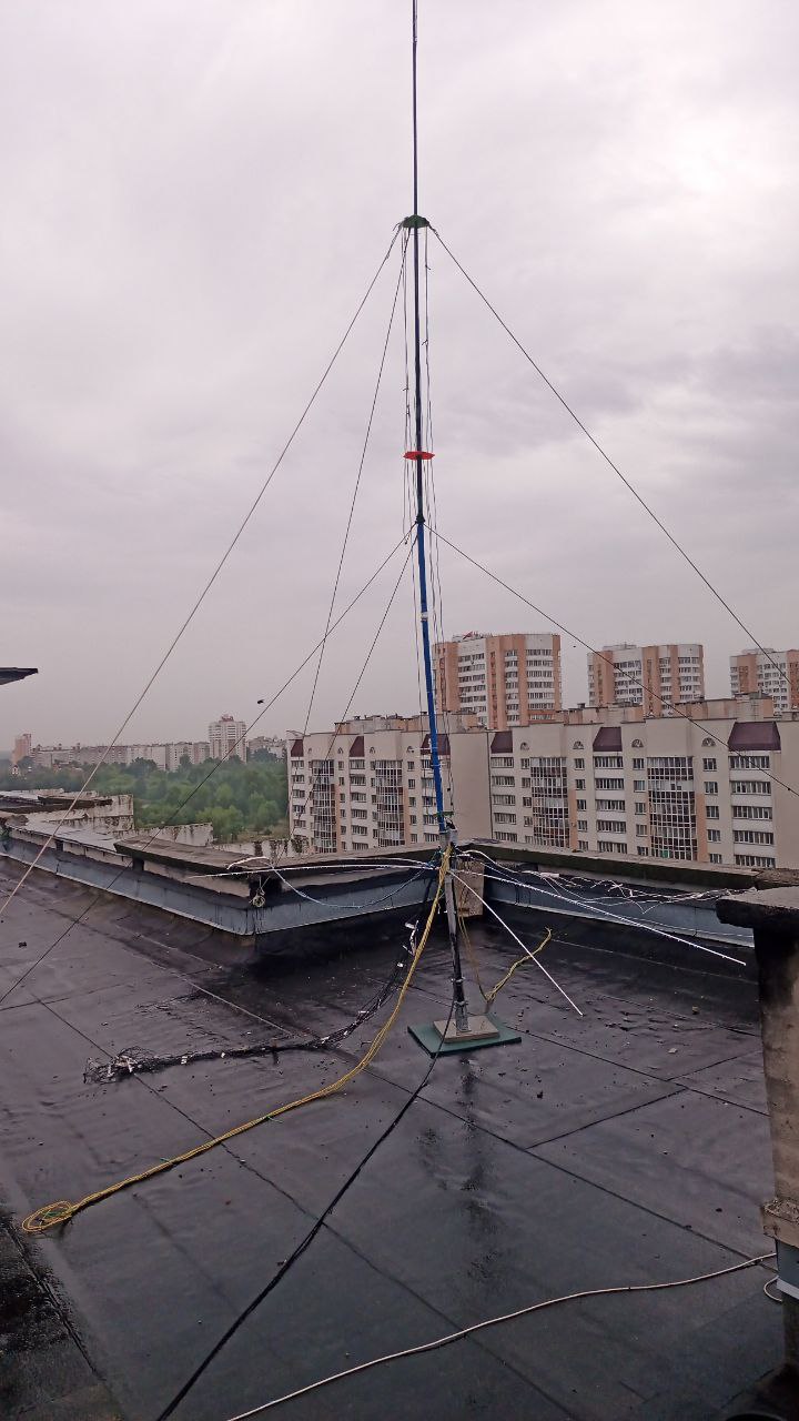 За день до теста в очередной раз поставил 2 эл JJ. Места на крыше, вблизи коммутатора уже мало. поэтому направил его на Европу. Ну и по старой доброй традиции, он не пригодился, так как прохождения на 10м в очередной раз не было… Помня о прошлой аварии сделал 2ой ярус растяжек для вертикала. Но все равно очевидно, что ждет меня третья итерация этой антенны…