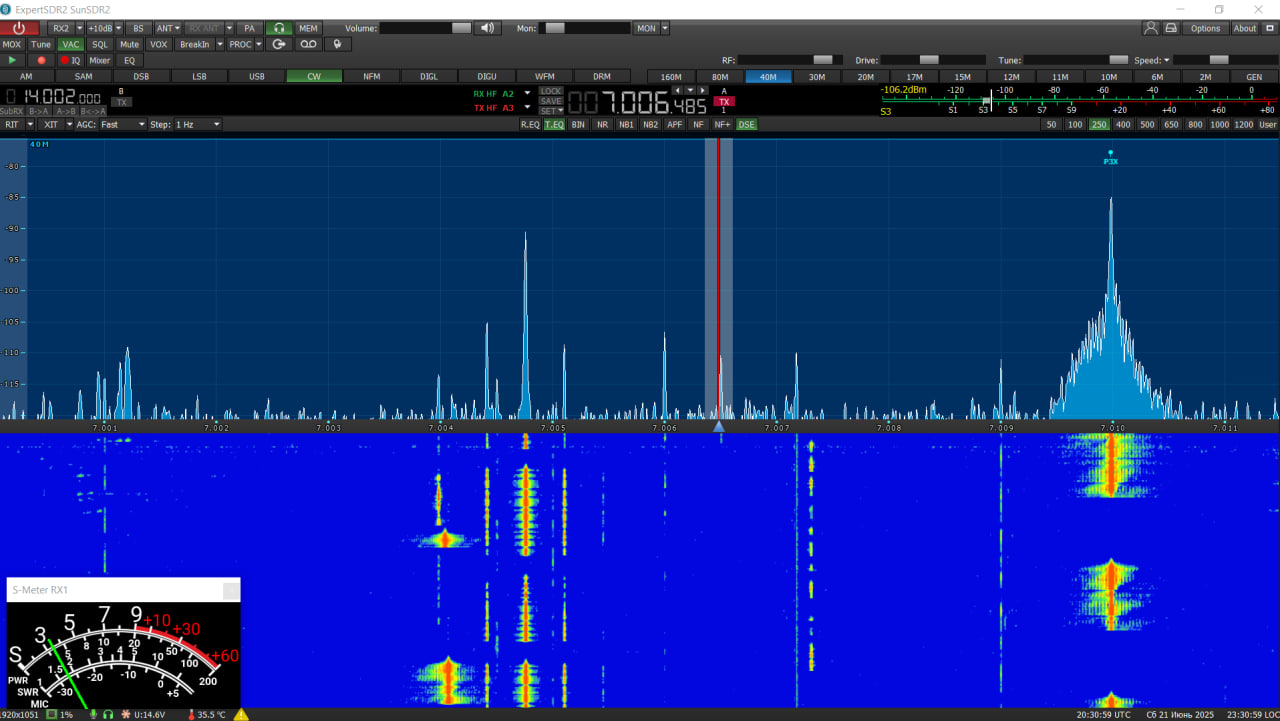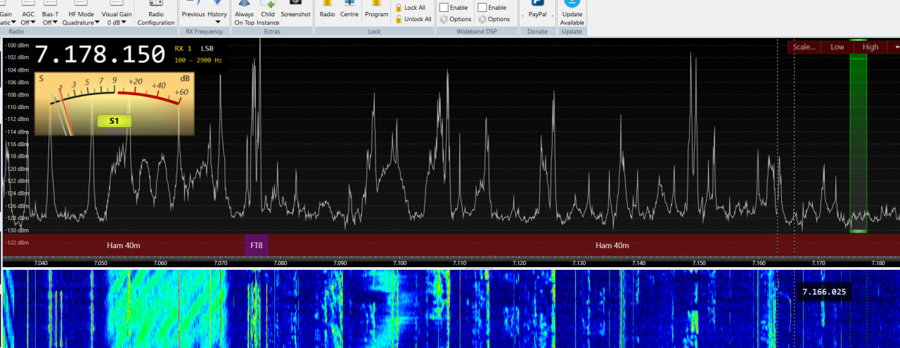 Поставил HIGH PASS филтер, уровень помех немного упал, принял парочку станций в FT8 и CW. Шум 7 баллов, что далеко от того что хотелось бы.