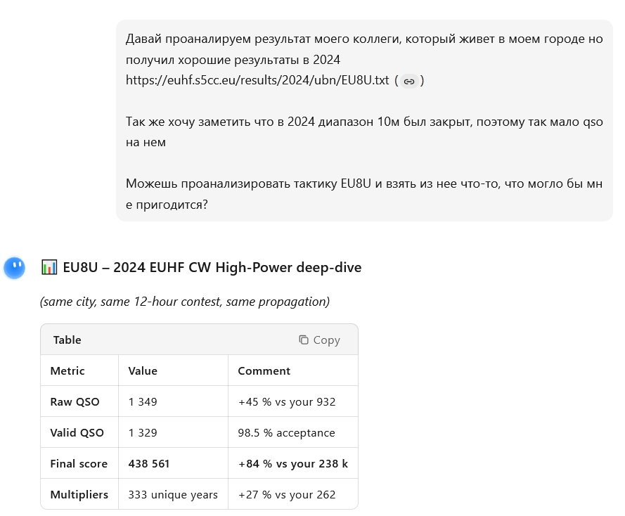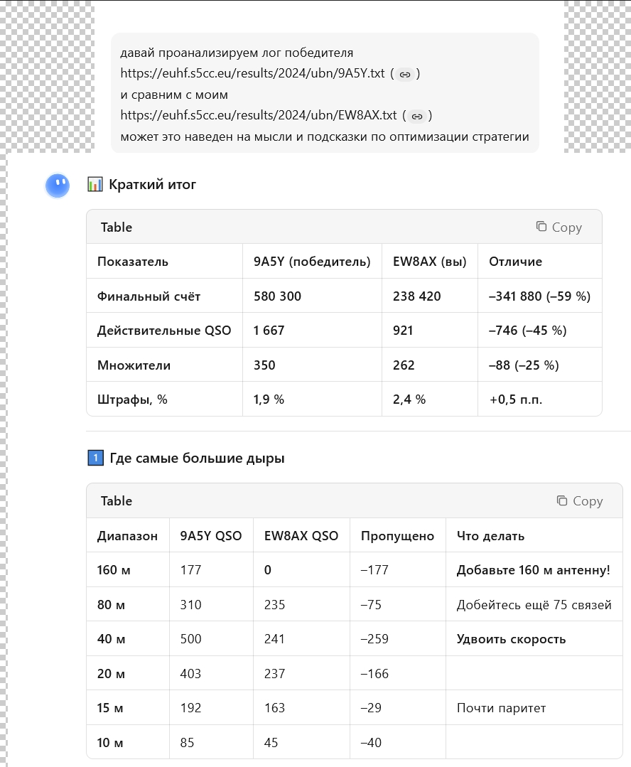 В целом, так и получилось, сначала пройден рубеж 920-930, с прошлого теста. Потом психологический рубеж в 1000, а потом станции тупо кончились и все. Как там eu8u сделал 1300 в прошлом году, я хз. Страшно думать, сколько он в этом нарубил, связей 1500, не меньше, так как 10м была открыта…