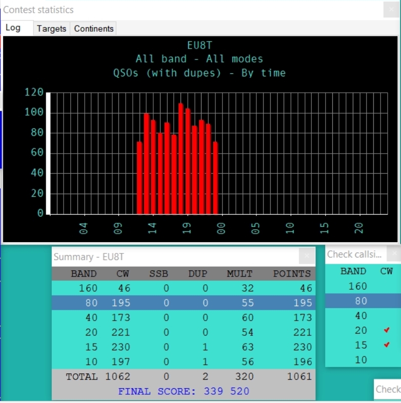 Тест начался. Все работает. 10ка открылась. Как обычно 80/20 — s&p/run, но сессии рана старался не держать меньше 15 мин, в среднем получалось по полчаса, а потом пустота. Где-то в такие минуты хорошо бы заюзать второй VFO… Но пока руки не дошли нормально настроить, видимо это будет факультатив к контесту в следующему году. Первый час провален по рейту, а у всех первый час топовый, блин. над было начать с 15 все же, не жадничать.