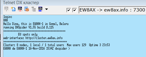 А значит, telnet наше все! Выбор пал, по некоторому стечению обстоятельств, на DXSPIDER. У него много документации и примеров настройки. Хотя по истечении прошедшей недели от старта настроек, мне кажется, что AR-CLUSTER был бы лучше. Впрочем, ничто не мешает запустить его в дальнейшем параллельно, на другом порту.