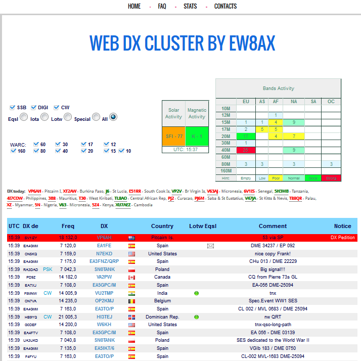 зы. Кластер настроен на выдачу только европейских спотов, веб монитор обновляется примерно каждые 5 секунд, в курсе кто LOTW, кто EQSL, кто 5ый океан и когда они обновляли свой LOTW в последний раз. Иногда угадывает IOTA, иногда хэмлого-дипломные станции, в курсе последних DX-Pedition 😀