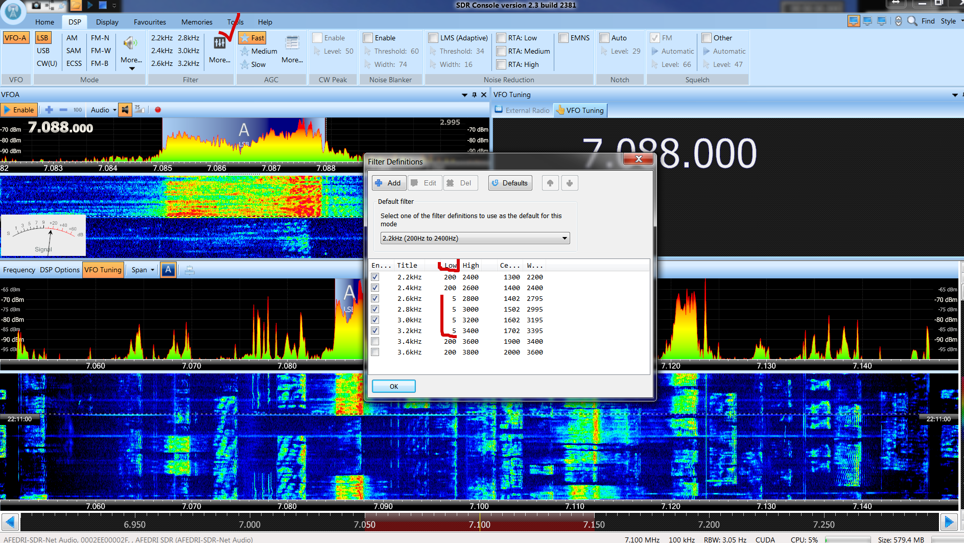 На вопрос знакомым, каким софтом пользуетесь и почему, очень часто получал ответ HDSDR, а причной было «там же такой звук!». И действительно, если сравнить HDSDR и SDR Console, разница на слух очевидна. Долгое время этот вопрос не давал мне покоя. Программа всем хороша, продуманный интерфейс, фильтры, настройки, но звук не тот. И вот недавно, настраивая в очередной раз фильтры залез в настройки полосы.